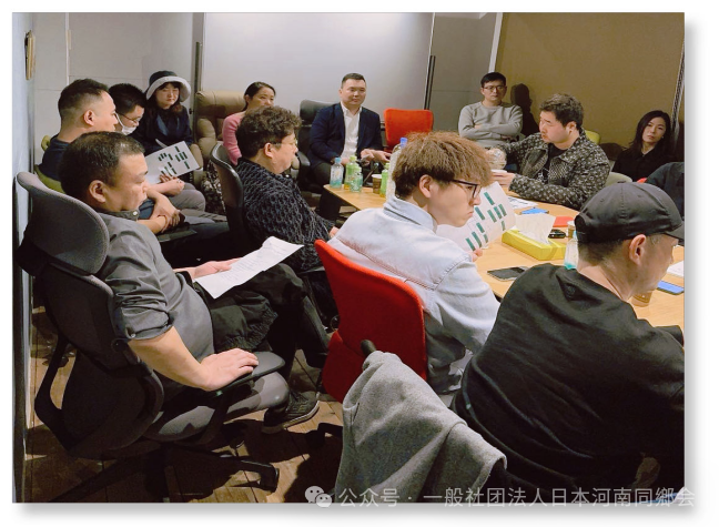 一般社团法人日本河南同乡会第四届一次理事大会由事务局长徐江主持,本届同乡会历时两年迎来换届选举, 此次换届选举采取自荐、他人推荐, 投票表决的方式产生, 并新增设 常务副会长以及事务局次长、常务理事三个职位。与会成员们先轮流做了简短自我介绍,介绍了自己的背景和从事的行业等,新加入的成员和老成员们迅速地认识和熟悉起来。